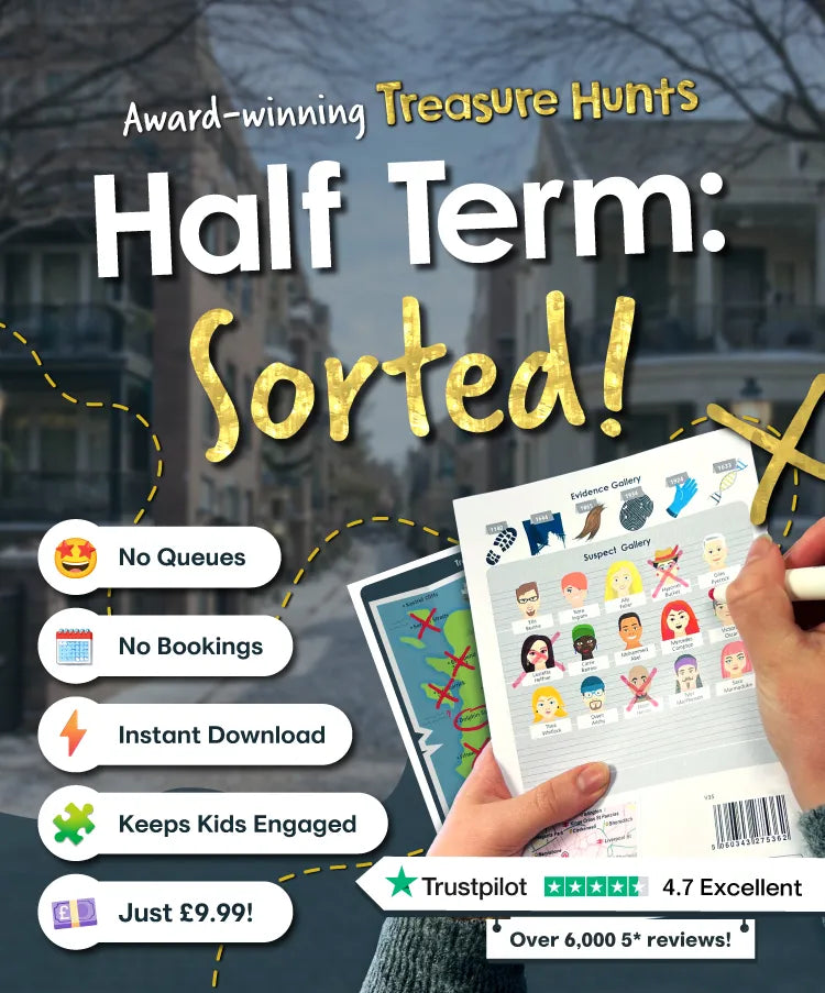 A Treasure Trail is a fun and exciting way to get exploring outside. There are treasure hunts, detective mysteries and spy missions in towns, villages, and cities all over the UK.