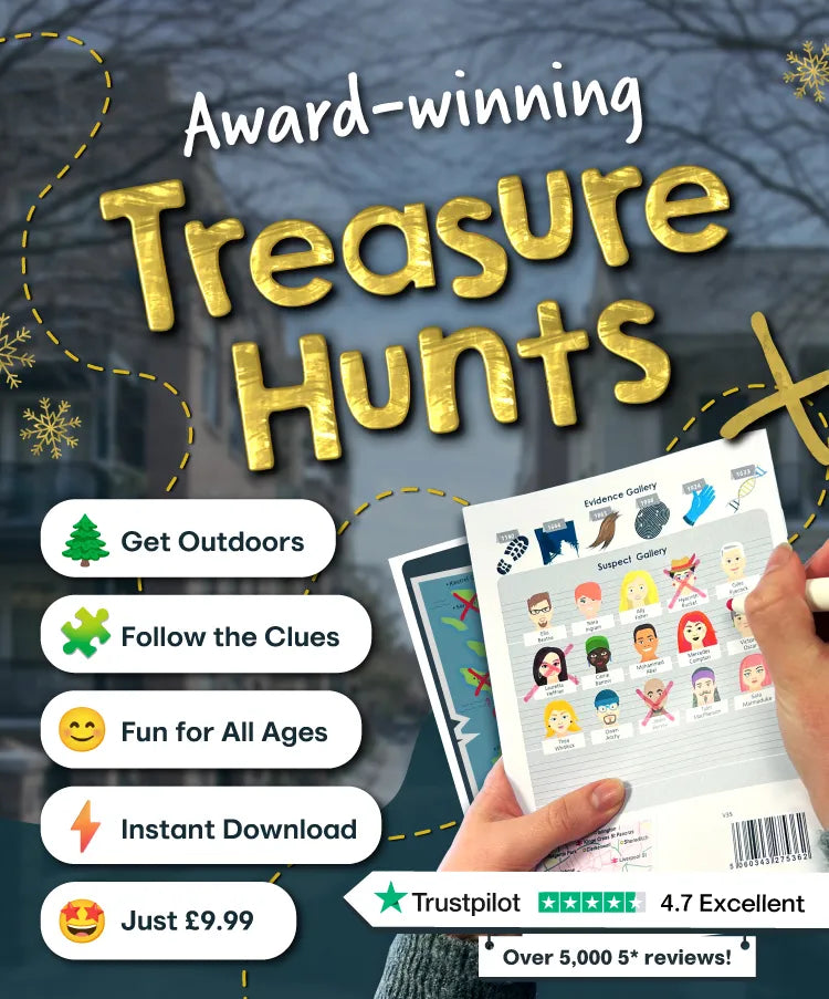 A Treasure Trail is a fun and exciting way to get exploring outside. There are treasure hunts, detective mysteries and spy missions in towns, villages, and cities all over the UK.