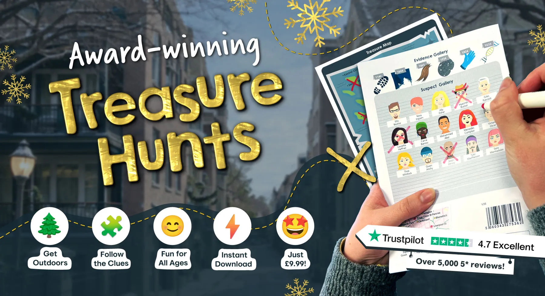 Whether exploring a new place or looking for hidden treasures in your local area, with Treasure Trails you'll see the sights, solve the clues, and above all, have fun with your family or team!