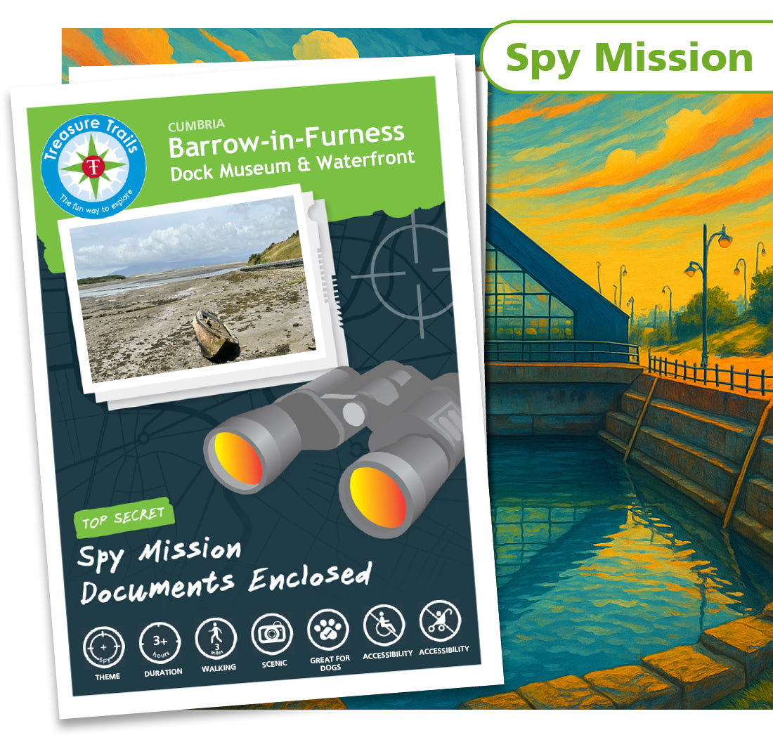 This secret mission will have you exploring around The Channelside Promenade area of Barrow-in-Furness. You'll be sneaking along clear paths and pavements, with some steps to navigate on the way. This means the assignment isn't suitable for any spies using wheels. Spy HQ would also recommend sturdy spy footwear for this operation.